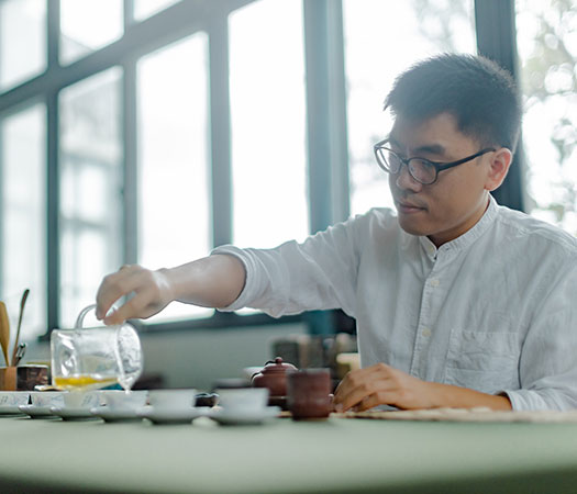 1984年生,鴻智茶場第三代品牌主理人,家族從福建安溪來台第七代。理科碩士畢業,原任職於生物科技產業,因對祖父母的思念,並有感於父親獨自照顧茶園的辛勞,2014年30歲時離職返鄉,成為新一代的斜槓青年茶農。